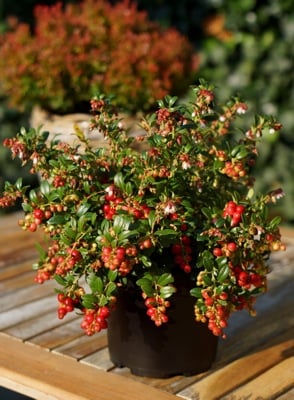 Vaccinium vitis-idaea ‘Fireballs’ is een wintergroen struikje waar in juni tot september witte bloemetjes in komen, gevolgd door knalrode eetbare besjes. De besjes zijn geschikt om compote of jam van te maken en erg lekker te combineren met wildgerechten. Advies: 5 stuks op 1 m2. Prijswinnaar in 2016.