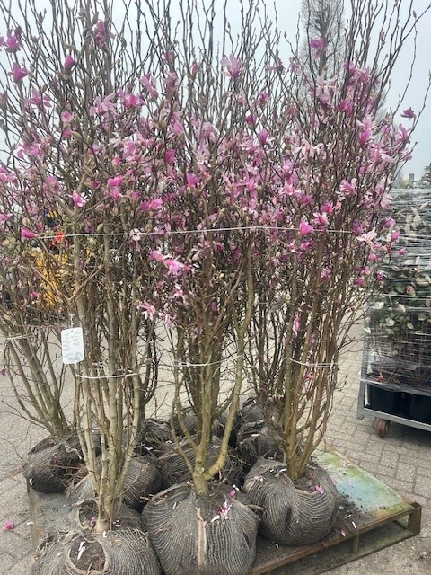 Deze Magnolia bloeit rijk met zachtroze bloemen. Blijft laag en is door de trage groei zeer geschikt voor de kleinere tuin.