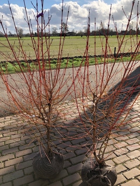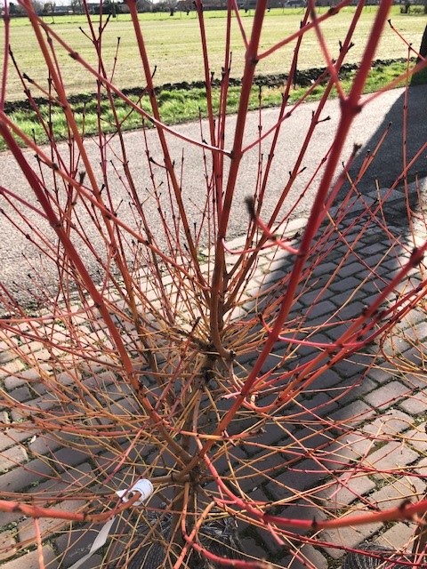 Deze Cornus heeft de grootste sierwaarde in de winter, de takken zijn dan prachtig oranje/rood van kleur.  Het blad blijft in het najaar lang aan de struik.