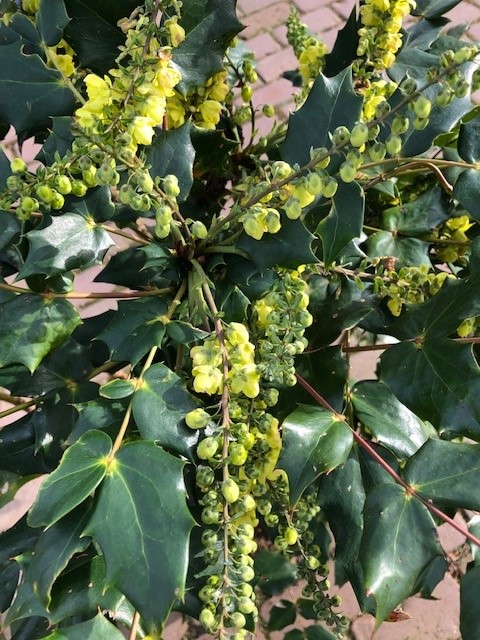 Een mooie winterbloeier, de gele bloemen verschijnen in november tot februari gevolgd door blauwzwarte bessen. Verlangt een beschutte plek tegen de koude wind. Geen felle middagzon.