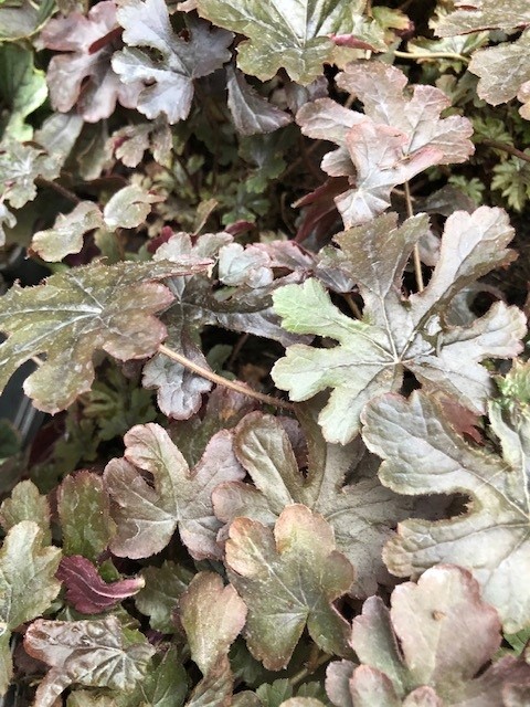 Heucherella ‘ Art Katana’ is een bijzonder mooi donker soort!