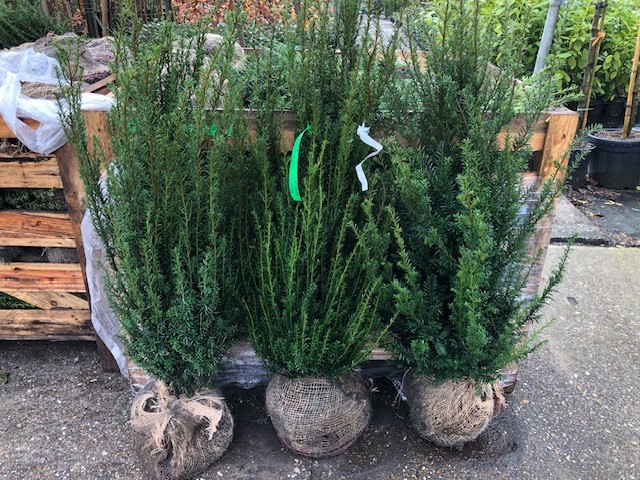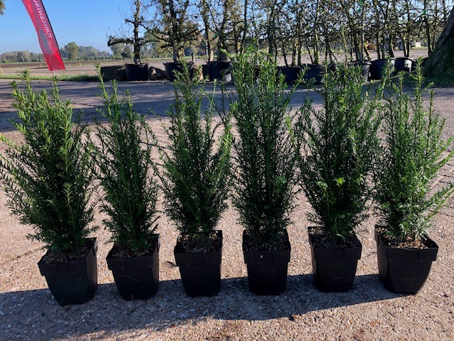 Taxus baccata is de bekende Taxus die veel voor wintergroene hagen wordt aangeplant. De Taxus is goed te snoeien en zeer geschikt voor een smalle, dichte haag. Het is toch wel één van de mooiste wintergroene hagen voor de tuin. Is ook mooi als solitair. Bloeit onopvallend en krijgt een rood besje. Door de dichte structuur leent de Taxus zich goed voor het bouwen van vogelnestjes. Advies: aanplantaarde gebruiken voor een goede start. In verschillende maten verkrijgbaar.